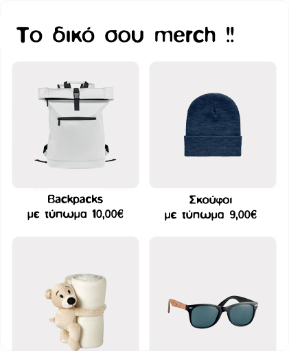 - Χαμηλές ελάχιστες ποσοτητές για όλα τα merch 💰